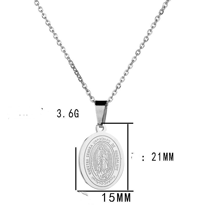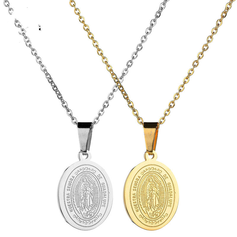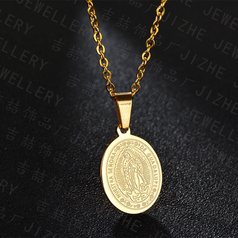A radiant beacon of maternal protection. This classic oval medallion bears the sacred image of Our Lady of Guadalupe, encircled by the timeless inscription "Nuestra Se–ora de Guadalupe". It acts as a spiritual anchor, offering a sense of deep peace and heritage to those who wear it close to the heart. A profound tribute for the soul that seeks divine oversight and unyielding grace.